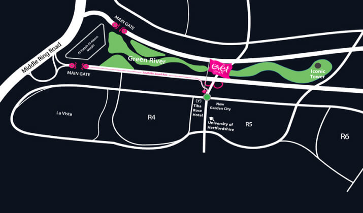 Empire Estate Developments chose to establish Evet at the heart of New Capital specifically in MU12. As well as the developer company is also looking forward to its clients’ aspirations, as it reflects on making it easy for its customers to get to the mall without facing any crowds. As the mall is near many vital roads and axes, For Example: